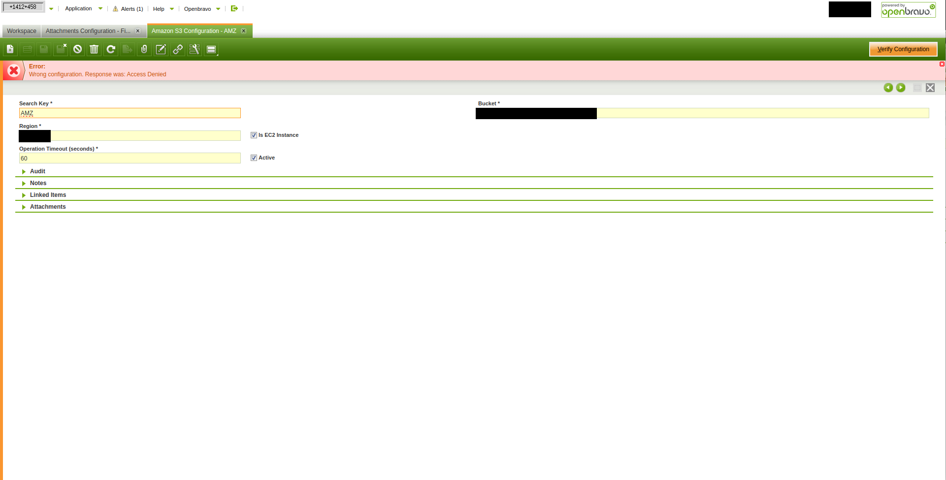| Steps To Reproduce | 1.- Ask for a IS environment to cloud 2.- Once you have the environment configure the s3 attachment configuration module. 3.- Click in the verify configuration button and check that it fails. | |||||||