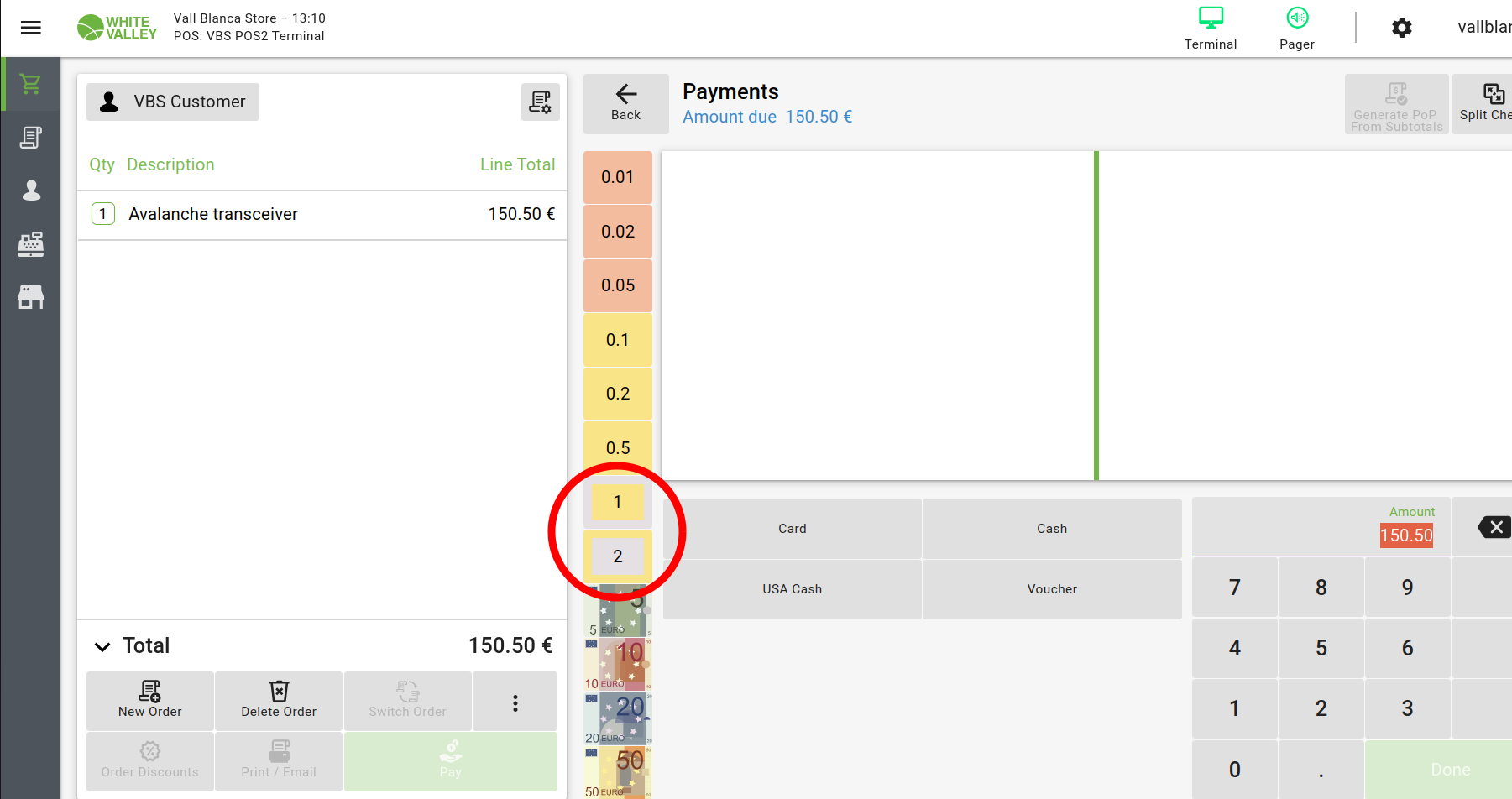 DescriptionIn VBS2 POS2 Terminal, when paying a ticket, the cash icons for 1 and 2 euros, have their colors swapped.