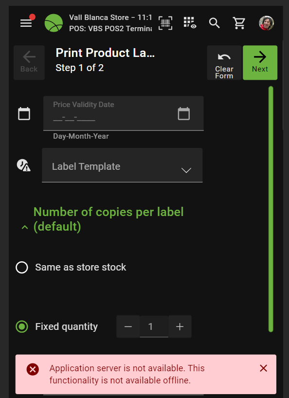 | Description | While working offline, the behavior of Print Product Labels is not the same as the rest of the functionalities that are not available offline. In the Application menu, the option to access Orders for example is disabled while offline. Same with Customers. However, the Print Labels option is available and it is only on entering the window that the message saying that the function is not available offline is shown. | |||||||||||
