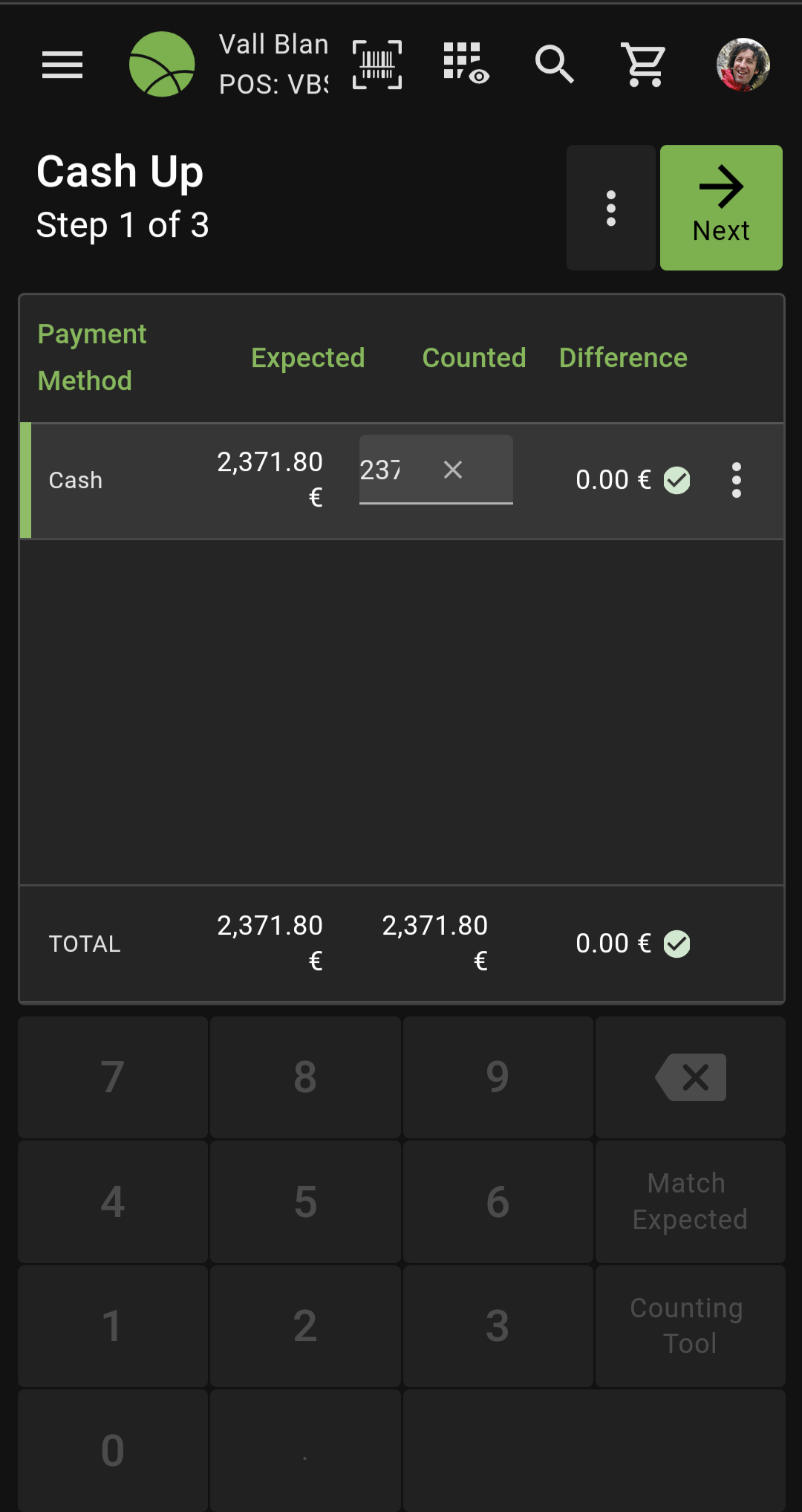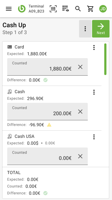 | Description | The first step of the cash up process is not fully adapted to portrait mode when filling in the "Counted" field | |||||||||||