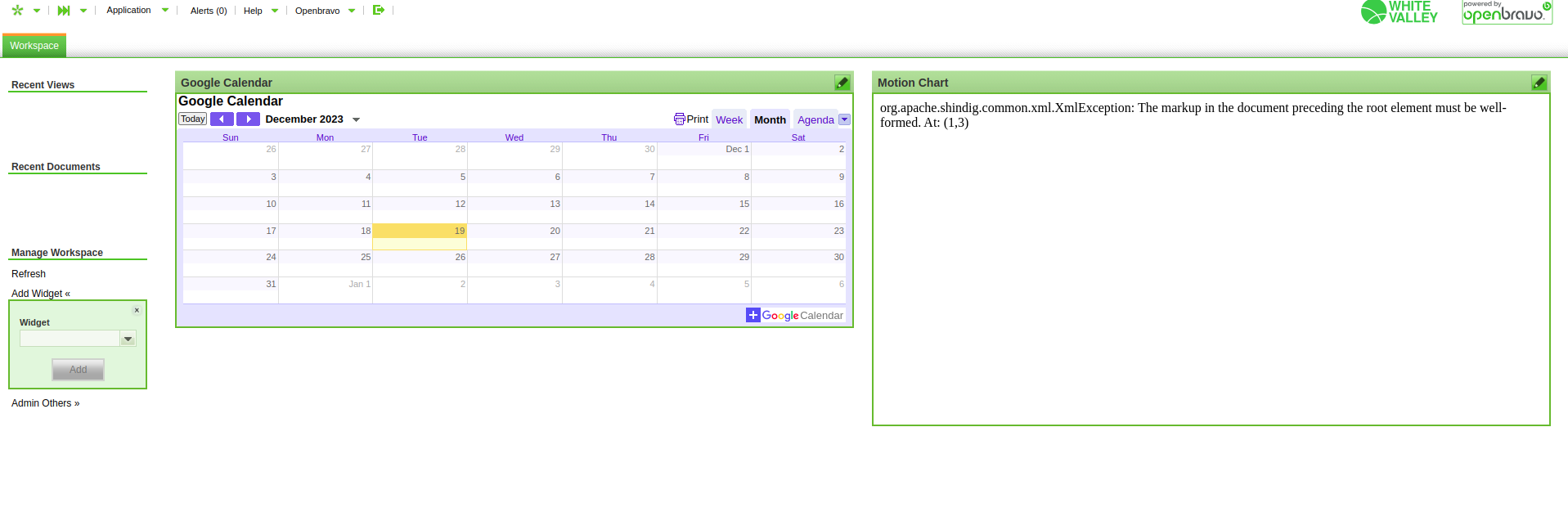 | Steps To Reproduce | 1- Install this module org.openbravo.integration.google. 2- Run ant install.source. 3- Checkout to this branch fr/53801-grpc-context-update in the same module. 4- Refresh eclipse. 5- Go to BO and change the role to white valley. 6- In the main window you will find add widget, click on it and choose google calendar. You will have a google calendar widget in the main window same as the screenshot in the attached. | |||||||