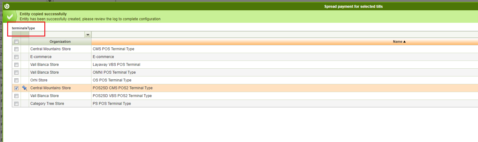 DescriptionterminalsType label is shown instead of a better User Friendly name inside the "Spread payment for selected tills" popup.