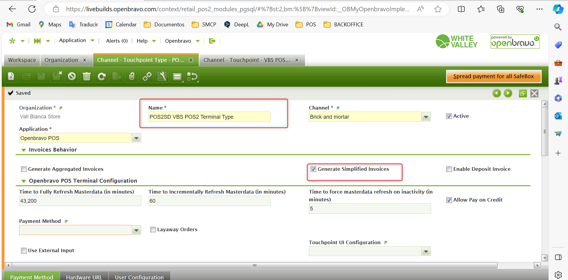 - In channel touchpoint TYPE put your record with simplified invoice (see screenshot)