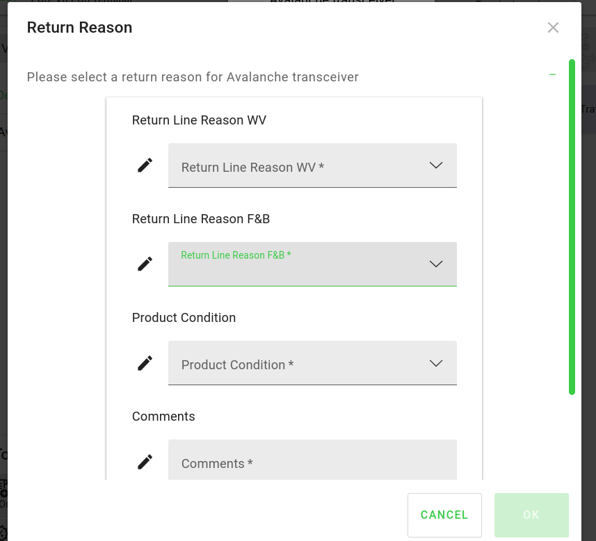 | Description | In return line dialog, we saw that we have two inputs one defined in white valley and the other in F&B. | |||||||