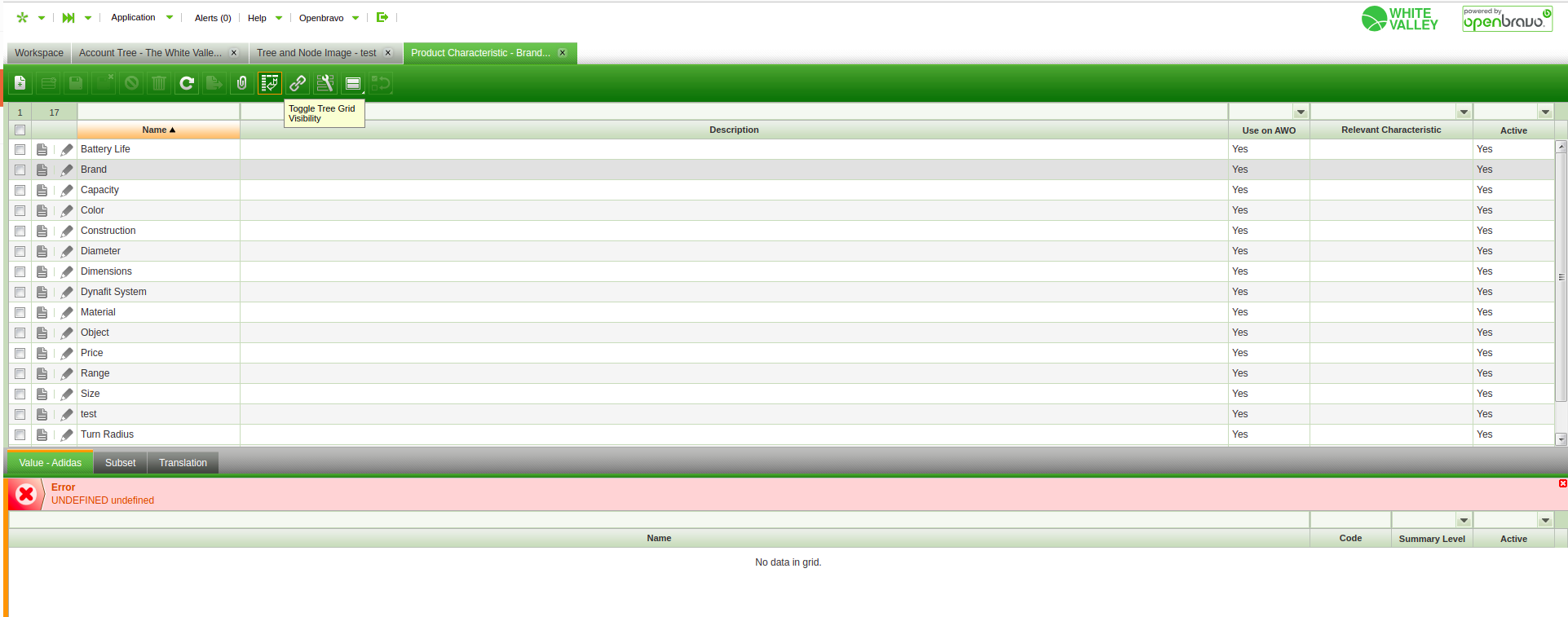 0053963: Error when using the tree node button in the Product Characteristics window.