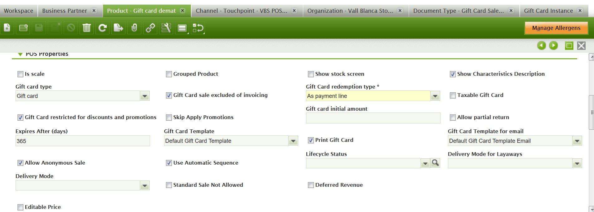Steps To ReproduceAfter creating a product gift card that uses automatic sequence (see GC product BO.png)
