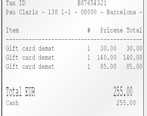 On the new printed tickets, new gift card numbers are displayed even if they don't exist in BO