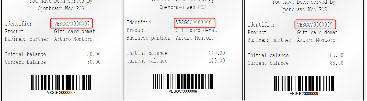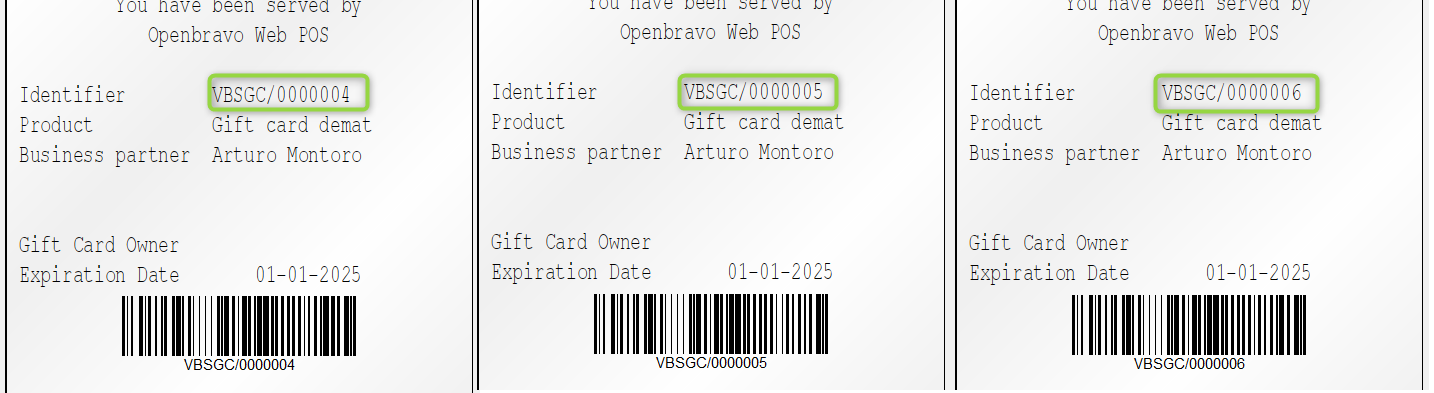 => In HWM, one template is printed for each gift card but new numbers are assigned even if they don't exist in BO and are not usable