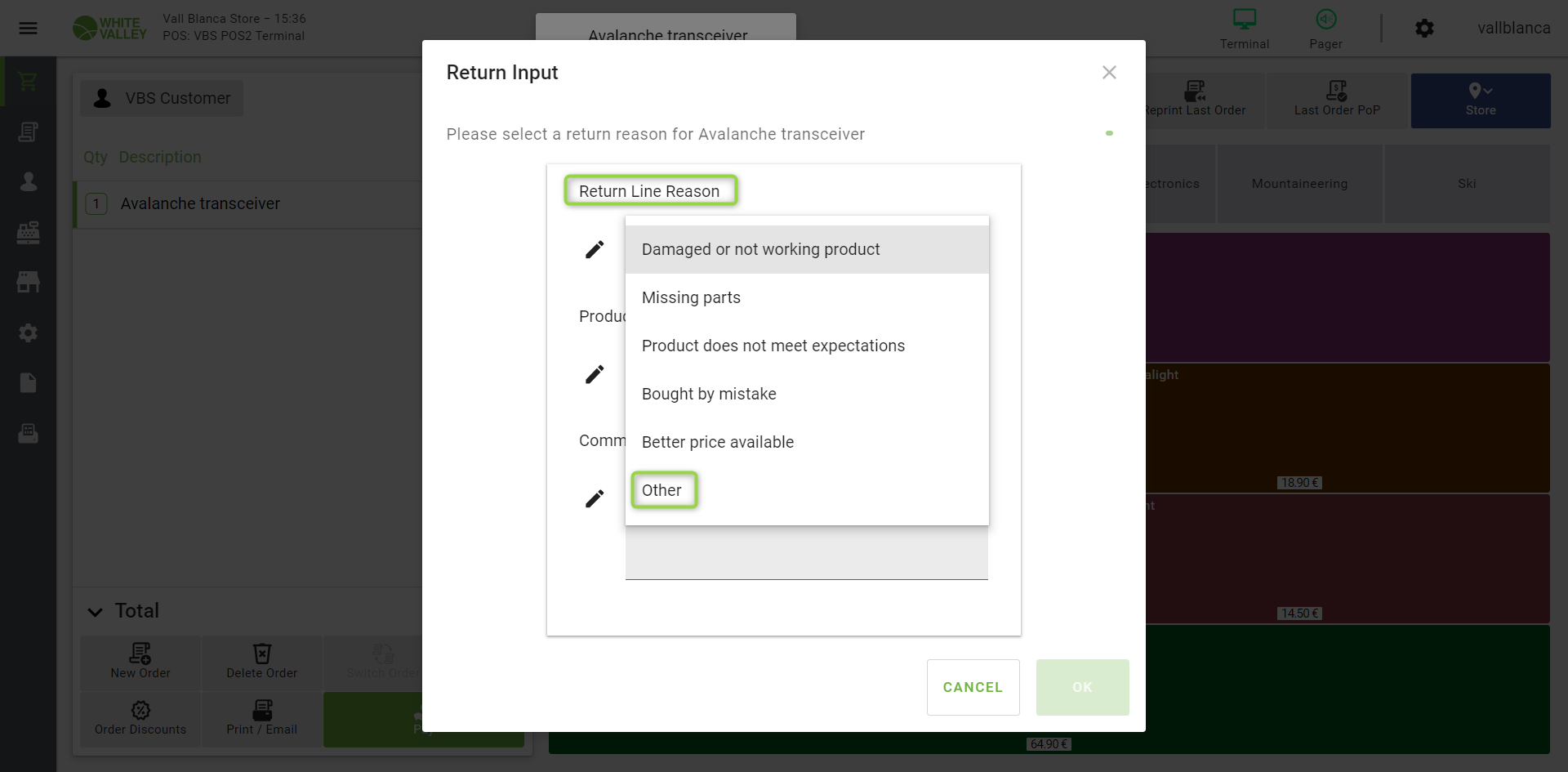 | Steps To Reproduce | In BO, log in with Role 'System Administrator' In window 'Language', define a second language as 'System Language' (for example 'French (France)') In BO, log in with role 'The White Valley Group Admin' In window 'User Input', select a user input (for example 'Return Line Reason') In subtab 'Translation', define a translation for the previous language ('French (France)' - see "BO User Input Translation.png") In subtab 'Input Value', select a value (for example 'Other') In subtab 'Input Value Translation', define a translation for the previous language ('French (France)' - see "BO User Input Value Translation.png") Log in POS The user is logged with language English Add a product to the ticket and select 'Return Line' on it A pop-up is displayed asking for a reason in English (OK - see "01 User logged in English.png") Change the language of the user in POS for French Add a product to the ticket and select 'Return Line' on it A pop-up is displayed asking for a reason in English (OK expected - see "02 French after change language.png") In BO, window 'Channel - Touchpoint', force a full refresh on the touchpoint used in POS In POS, set the default language to French, log out and log in A full refresh happens Add a product to the ticket and select 'Return Line' on it => A pop-up is displayed asking for a reason but it is still in English (KO - see "03 French after force full refresh in BO.png") We have to clean cache of the browser in order to see properly the translation in French (see "04 French after clean cache of browser.png") | |||||||