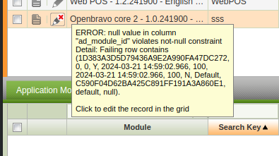 Directly closing issue as related merge request is already approved. Repository: https://gitlab.com/openbravo/product/pmods/org.openbravo.core2 [^] Changeset: 5e8ea17a599244deaea27476f166a7d545443db1 Author: Javier Armendáriz <j.armendariz@orisha.com> Date: 25-03-2024 14:36:21 URL: https://gitlab.com/openbravo/product/pmods/org.openbravo.core2/-/commit/5e8ea17a599244deaea27476f166a7d545443db1 [^] Fixed ISSUE-55028: Setting Application's module as the associated module for the automatically created Application Mode --- M src/org/openbravo/core2/event/OBC2ApplicationModeEventHandler.java --- |