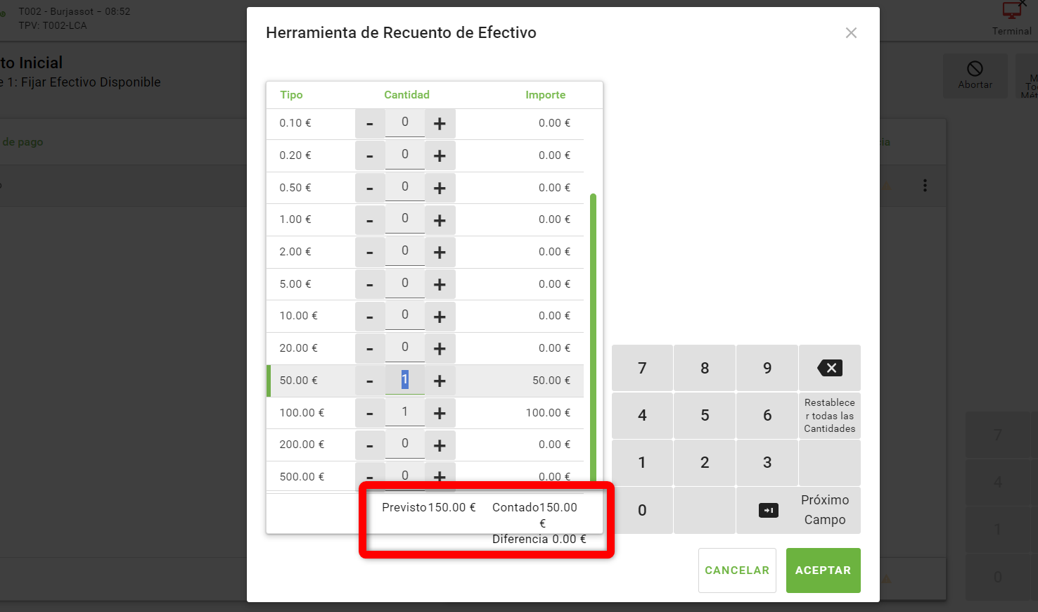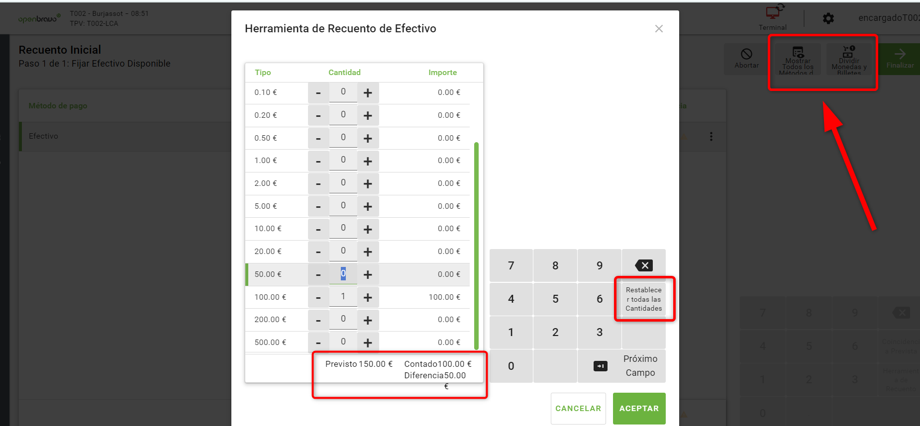| Description | Some fields are cut in the Initial Count window: (in spanish) - The difference down the counting tool (different display before and after counting the cash see both screenshot) | |||||||