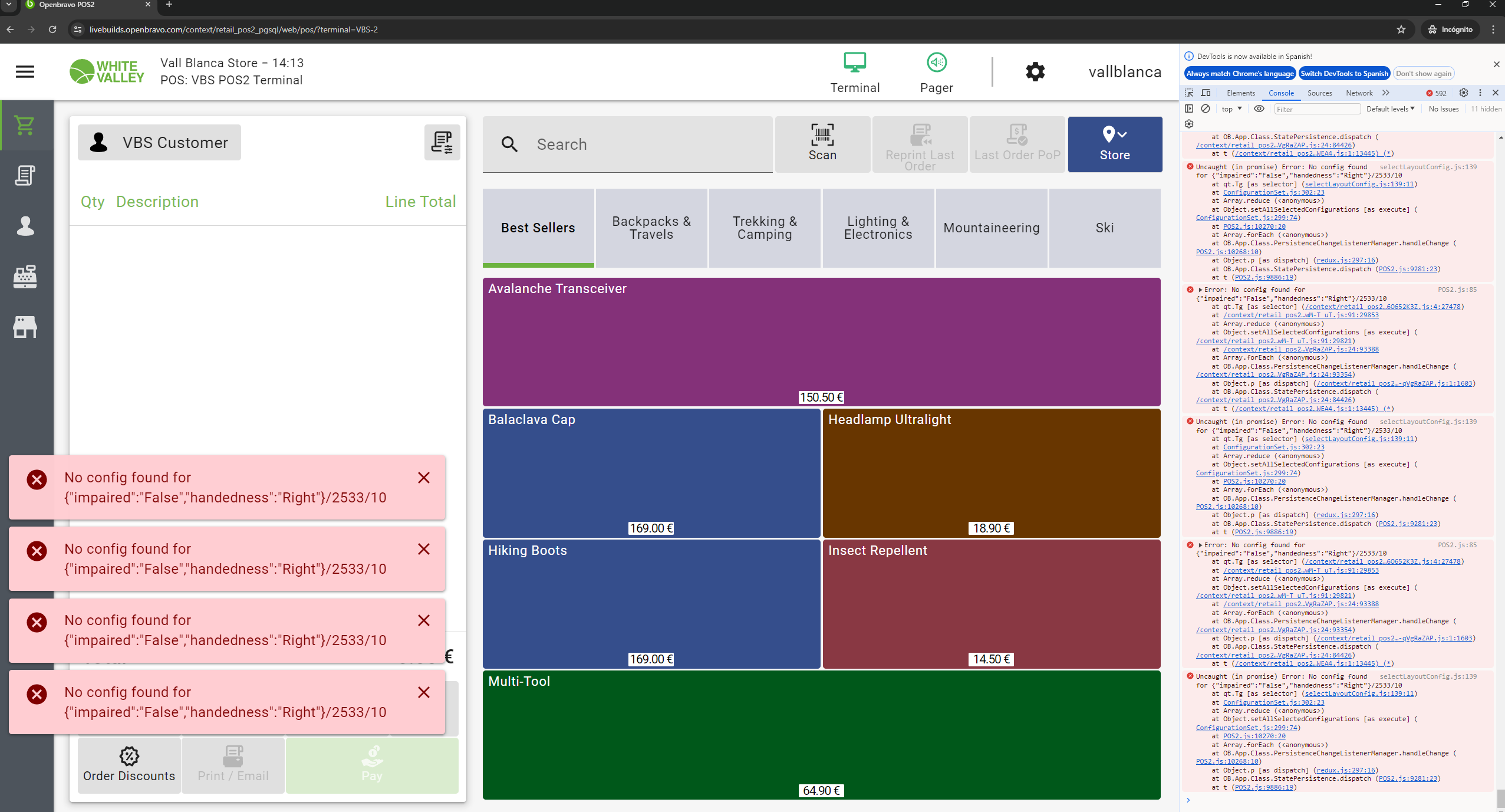 DescriptionIn case the browser window is not maximized and rescaled to a small height, errors are continuously thrown and the POS2 user must refresh the application to continue working with it.