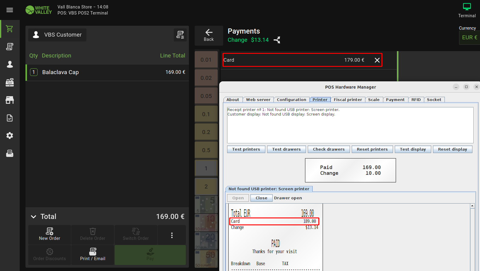 4.Pay attention to payment status:'Change $13.14' and payment line:'Card 179€'