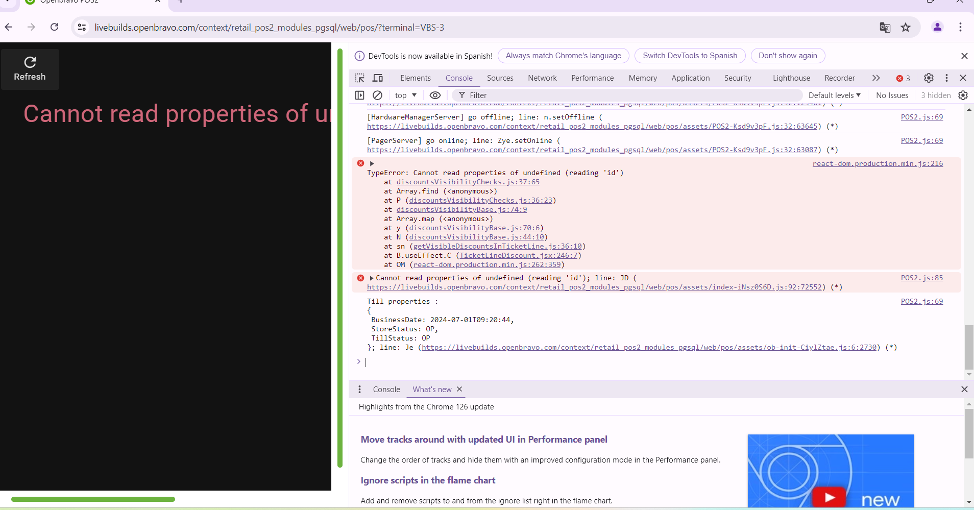 5. See POS shows error message and is not possible to exit unless cache is cleared