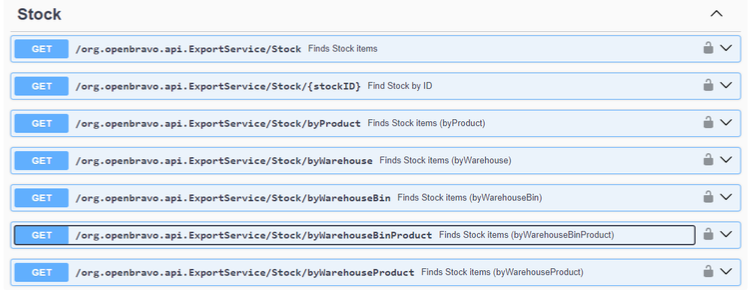Directly closing issue as related merge request is already approved. Repository: https://gitlab.com/openbravo/product/pmods/org.openbravo.api [^] Changeset: f742598f8e05be9dec1f8eadf21cb1dd082c184d Author: Íñigo Fernández <inigo.fernandez@openbravo.com> Date: 31-07-2024 07:01:06 URL: https://gitlab.com/openbravo/product/pmods/org.openbravo.api/-/commit/f742598f8e05be9dec1f8eadf21cb1dd082c184d [^] Fixes ISSUE-55965: [STOCK][API] API call to get stock by Bin/Product/Organization --- M src-db/database/sourcedata/API_EXPORT_FILTER.xml M src-db/database/sourcedata/API_EXPORT_FILTER_PARAM.xml M src-db/database/sourcedata/OBEI_PROP_MAP_INSTANCE.xml --- |