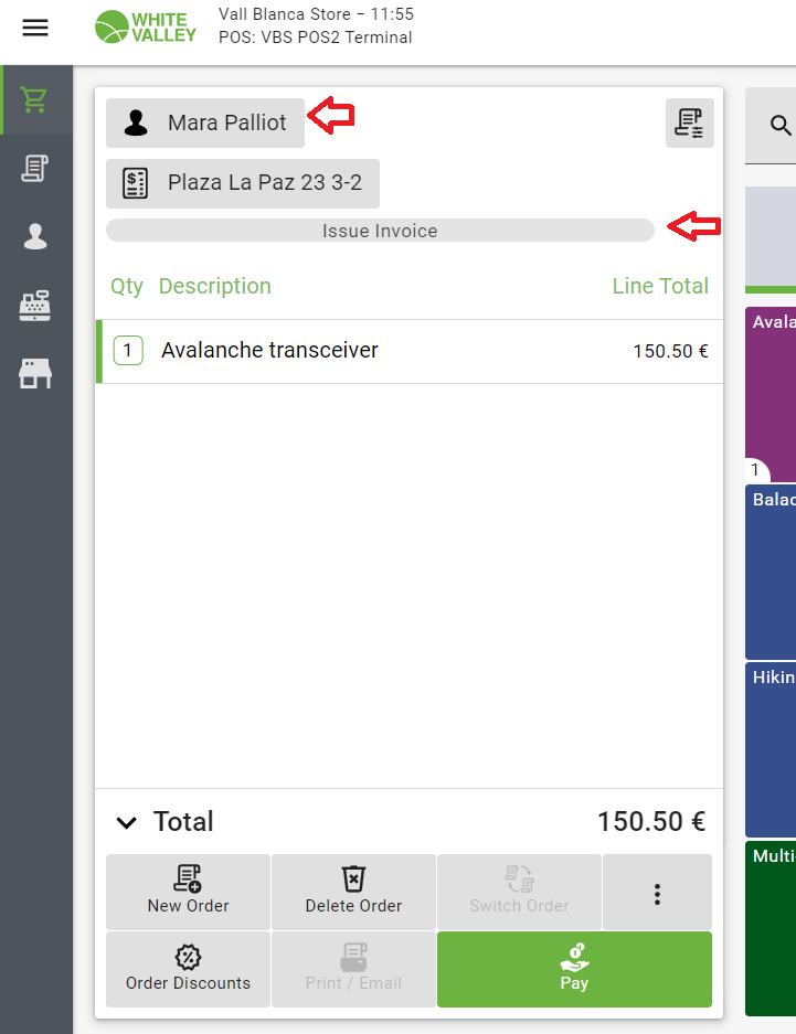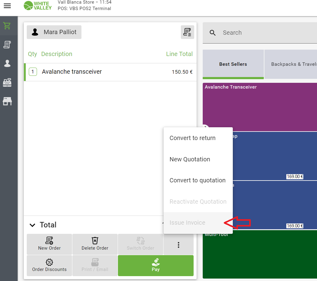 | Steps To Reproduce | 0-Login POS2 as vallblanca. 1-Add 1x Avalanche Transceiver to the current ticket. 2-At the top of the current receipt, click current Client and assign "Mara Palliot" customer to this ticket. 3-Click 3 dots button and realise "Issue Invoice" is disabled. Mara Palliot can not execute that action. 4-Click again in the present Client at the top of the ticket and change Mara Palliot Client for Arturo Montoro clicking "Assign Another Customer" option. 5-Once Arturo Montoro is applied to that ticket, click the 3 dots button and click Issue Invoice option. 6-Click again Arturo Montoro Client and click "Assign Another Customer". Assign "Mara Palliot". DEFECT: It is possible to continue with Mara Palliot as Client with that ticket Invoiced. | |||||||