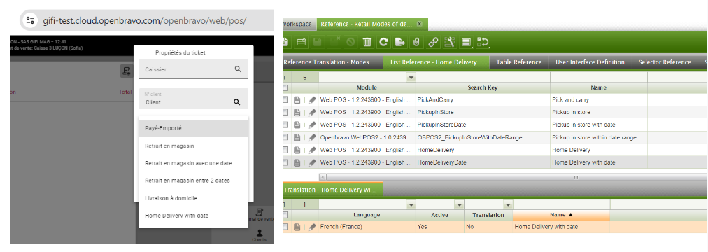 | Steps To Reproduce | 1. Open POS 2. Change the language to french 3. Go to ticket properties 4. Click on delivery mode to have the list displayed | |||||||