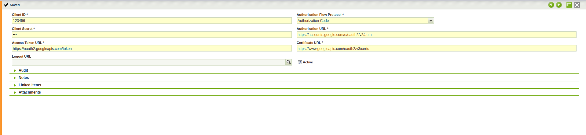 | Description | In the authentication providers configuration window that can be accessed as system administrator, while defining the type Open id a subtab is shown to be configured. Here there are some fields to store the urls to be used in the protocol exchange. This fields should be defined as links but they are defined as strings. The mentioned fields are: - Authorization URL - Access Token URL - Certificate URL | |||||||
