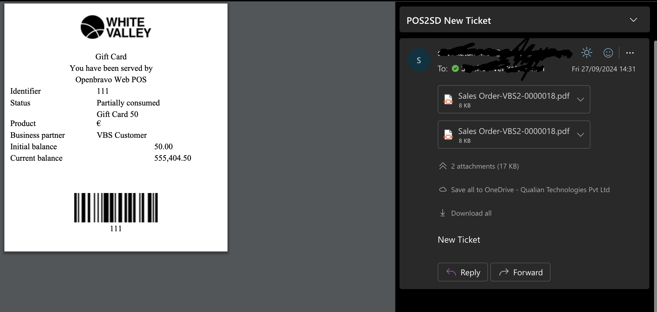 | Description | Current result : The sales order ticket is not attached to the email when a credit note or gift card is used as payment Expected result : The sales order ticket should be attached to the email when a credit note or gift card is used as payment https://openbravo.atlassian.net/browse/RM-16700 [^] | |||||||