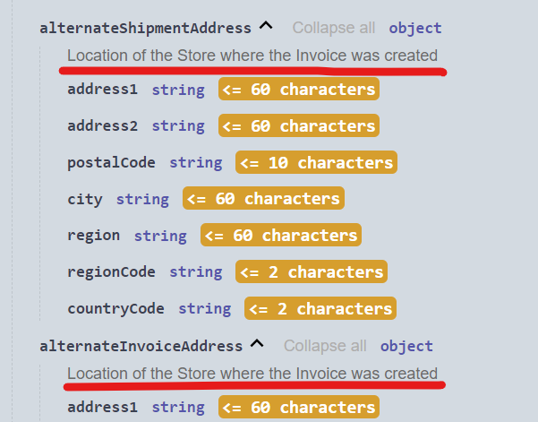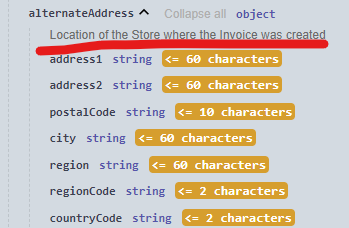 | Summary | 0056704: EXPORT ORDER & INVOICE API: wrong description in the swagger for alternateAddress fields | |||||||