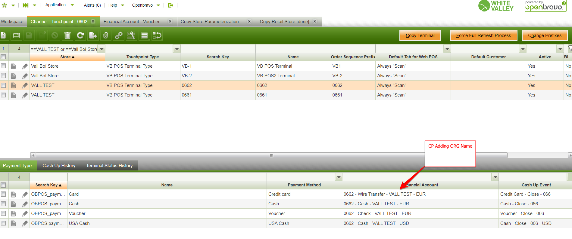 Hello, see the Template organization does not have the organization name in the financial account. See screenshot 1, FA: POS2 CREDIT CARD-EUR but for the store copied, the financial accounts are POS2 CREDIT CARD-NAME OF OR- EUR |