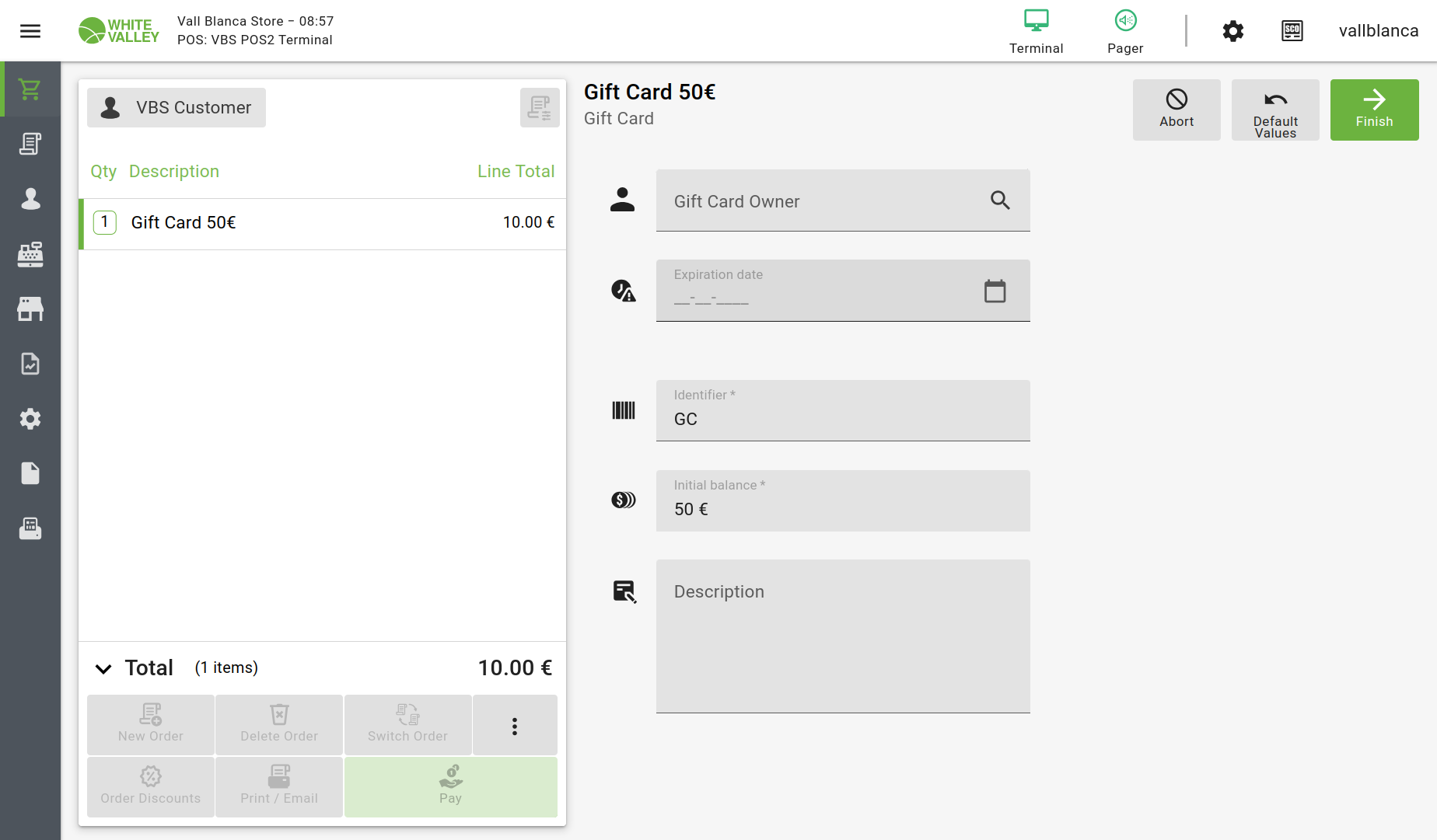 | Steps To Reproduce | 1) Log in POS 2) Search for Gift Card 50€ product 3) Type GC in the identifier field 4) Click Finish | |||||||