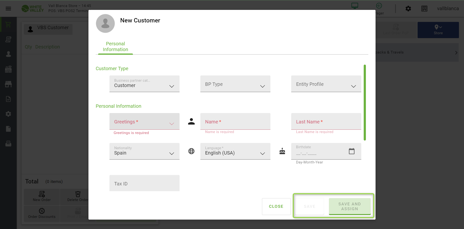 | Proposed Solution | 'SAVE AND ASSIGN' should be greyed out, like when creating a new customer If a mandatory field is not filled, the two buttons are well greyed out (OK - see Customer greyed buttons OK.png) | |||||||