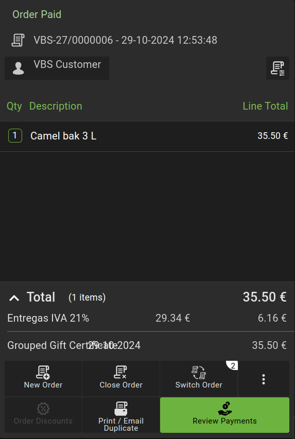 | Steps To Reproduce | 1- Go to POS2 2- Create a Gift Certificate 3- Select any product 4- Select Gift Certificate payment method 5- Select Done 6- Go to Orders 7- Select the order done before 8- Expand Total summary Expected result: The Grouped Gift Certificate text and Date are shown correctly Actual result: The Grouped Git Certificate text overlaps with the Date | |||||||