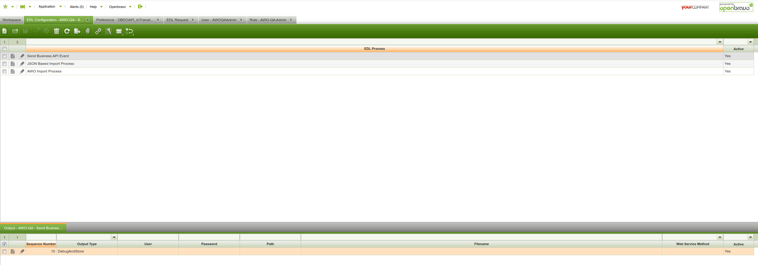 | Steps To Reproduce | Set the "DOAPI: In-Transit Bin for Automatic Issue " preference as TRK-02@TRK Set EDL Configuration Set the Event Subscription "Update DO qty through goods movement not triggered by API"" 1)Send the DOR through the API 2)Go to "Distribution Order Receipt" tab, select the order, click "Receive", select and user. 3)Go to AWO Front with the user assigned in previous step. 4)Confirm the DOR The UpdateDOQuantities message is not sent as EDL. | |||||||