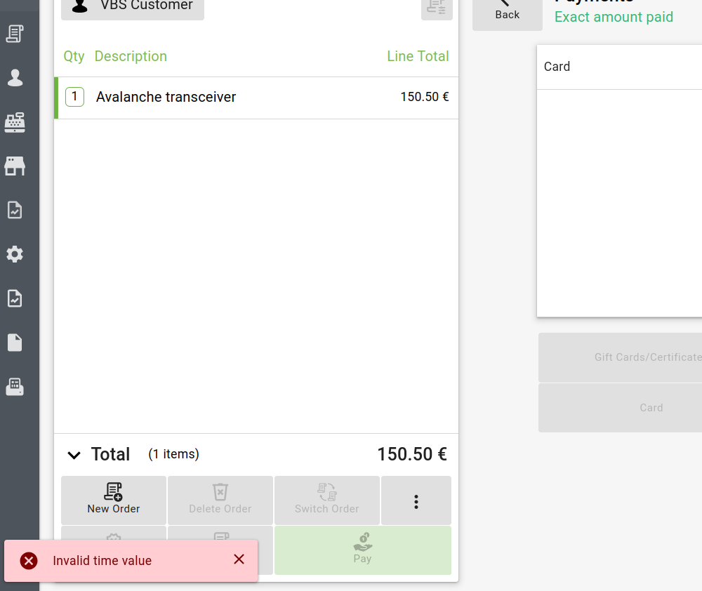 DescriptionIn a till configured without a payment method with "initial count cash" flag enabled, when a ticket is completed and DONE button is clicked, error is returned: