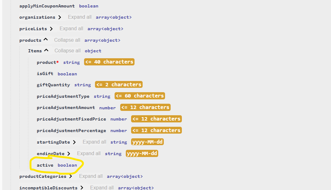 | Description | API Promotion: active field is available in Import object (POST) but not in Export Object (GET) | |||||||