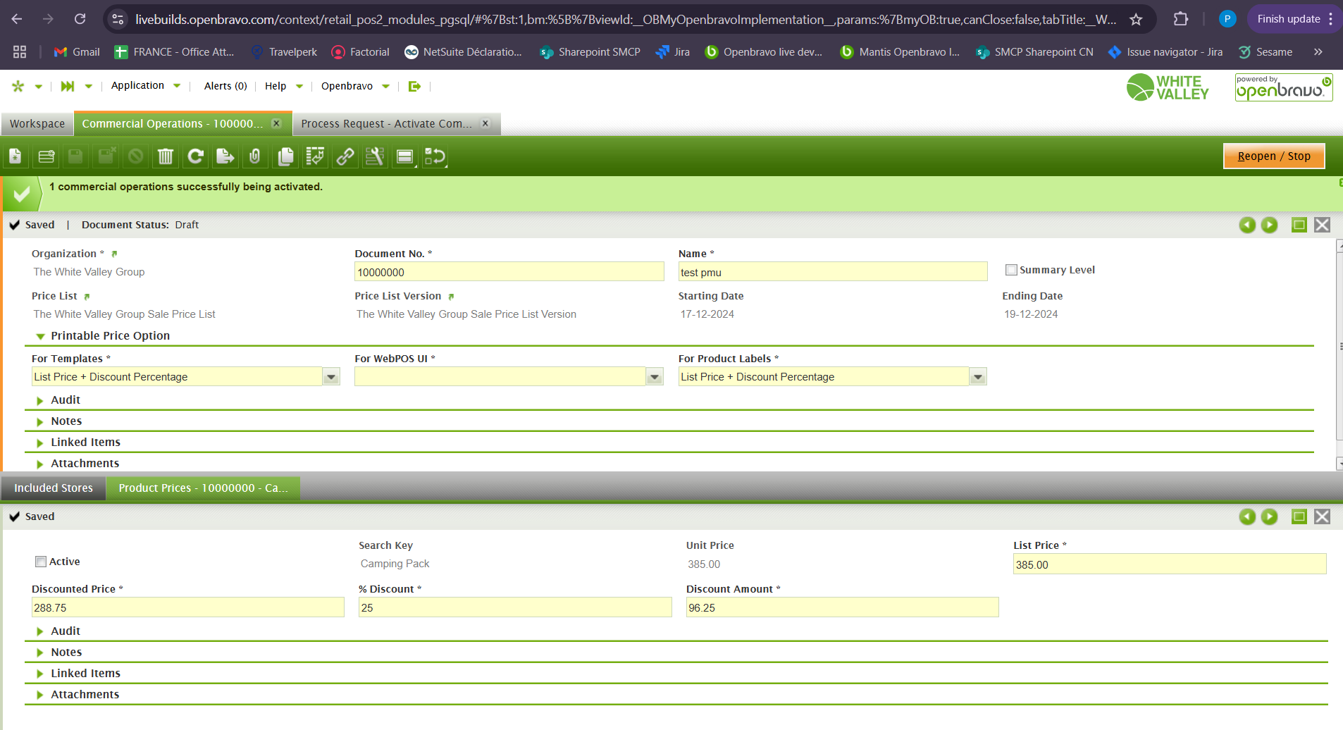 No, the opecom is activated with the process request. Only the screenshot was done before the activation but for sure it is activated. If not, no discount would be shown at all.
