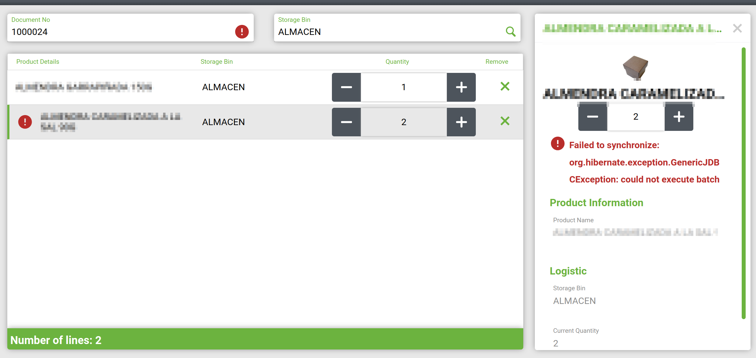 | Description | If during an inventory a trigger database throws and exception the message is not captured by the front end just informing the customer about and error in Hibernate "Failed to synchronize: org.hibernate.exception.GenericJDBCException: could not execute batch" | |||||||