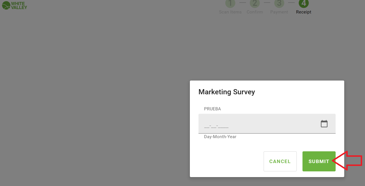 | Steps To Reproduce | 0-Login to SCO main screen using vallblanca (in a context with Marketing Survey configured and, inside "Marketing Survey" window, the "Requirement *" field in is set as "Mandatory" and the "Type of Survey *" field is set as "Date". Besides, in Marketing_Survey || Organization tab, the "Application Mode" field must be "Self-Checkout (SCO)") (image attached with the configuration). 1-Click "Enter Code Manually" and add any product. 2-Click "Finish and pay" and click "Confirm basket". 3-Select "Card" as payment method. 4-Select "Simplify invoice" and "No receipt*". Click "Continue" button. 5-The "Marketing Survey" popup must have been shown. Click in the grey area of the input field (not the calendar icon) and "DD-MM-YYYY" will be shown. Then, click SUBMIT button. DEFECT: SUBMIT button is enabled there and it is clickable. It must be disabled until a proper input has been introduced. 5 (alternative instead of previous step 5)-The "Marketing Survey" popup must have been shown. Then, click SUBMIT button. DEFECT: SUBMIT button is enabled there and it is clickable. It must be disabled until a proper input has been introduced. | |||||||