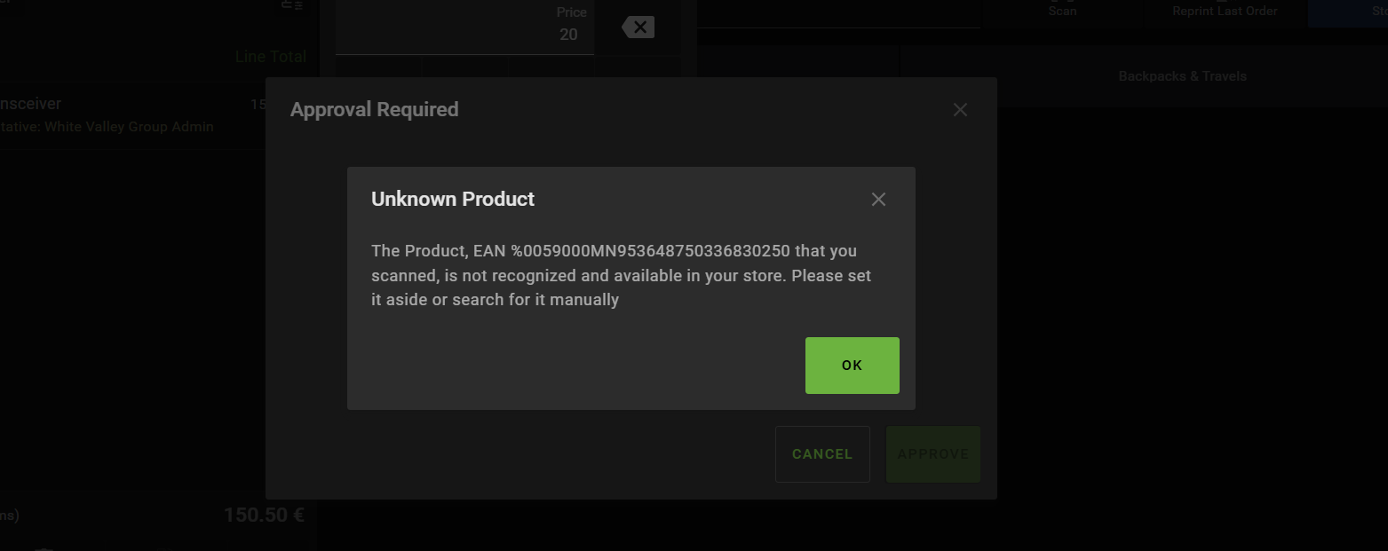 | Description | When the pop up is opened the cursor is in a field and when scanning an EAN (User for approval or serial number for product activation). POS is trying to add an EAN and display the pop up : Unknown product The product EAN that you scanned is not recognized (see attachment) For product activation, it is a big issue because they have ID to enter with more of 20 digits and an error can be activate a bad product | |||||||