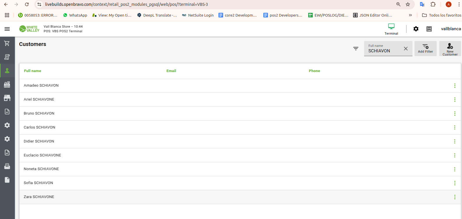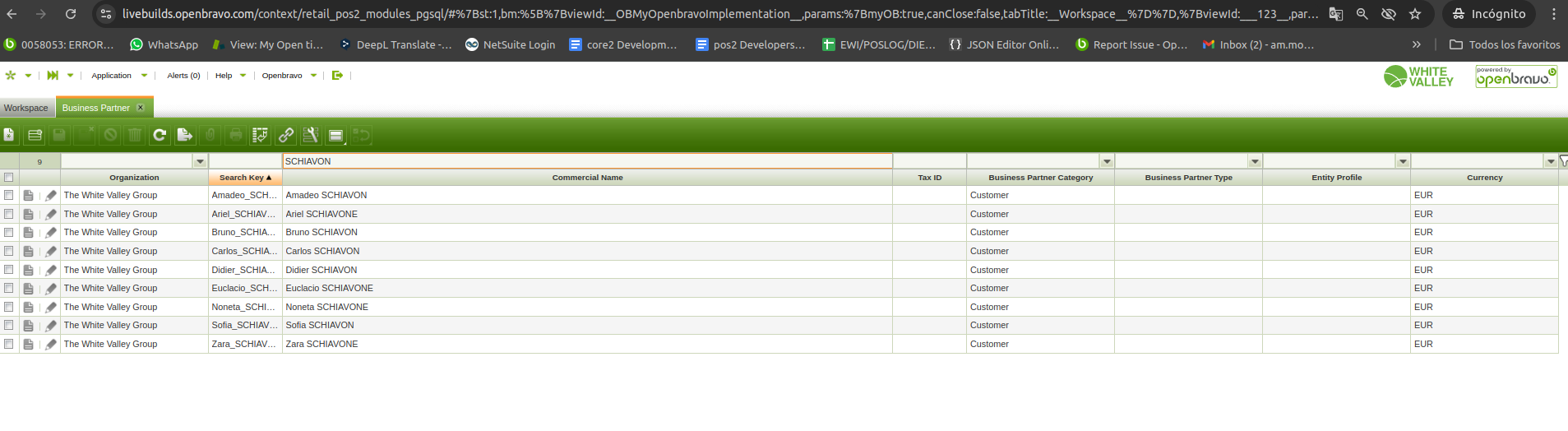 It has been solved but only in part. I explain why, at the moment of creating the business partners we can visualize them in the following way in the POS2 . Example in images i attached. We can see the order in POS2 and B.O its not right. We need to order all the SCHIAVON together on one side and on the other side the ones that are SCHIAVONE , always in alphabetical order, we should not see a SCHIAVONE in between as we can see in the attached pictures. |