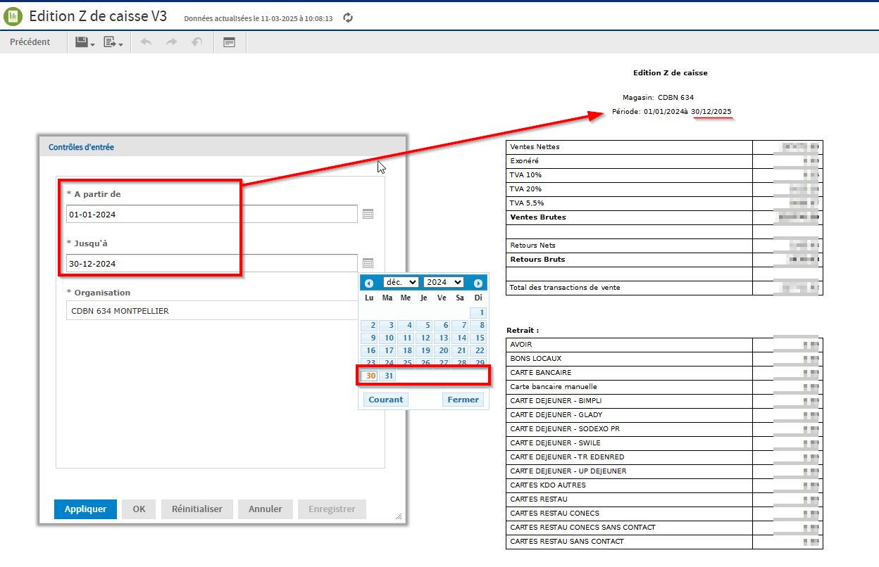 | Description | We've got an issue with the report "Edition Z de caisse V3" in Maisadour. Problem is due to calendar use by the report (JAVA issue) A week year is in sync with a WEEK_OF_YEAR cycle. All weeks between the first and last weeks (inclusive) have the same week year value. Therefore, the first and last days of a week year may have different calendar year values. | |||||||||||