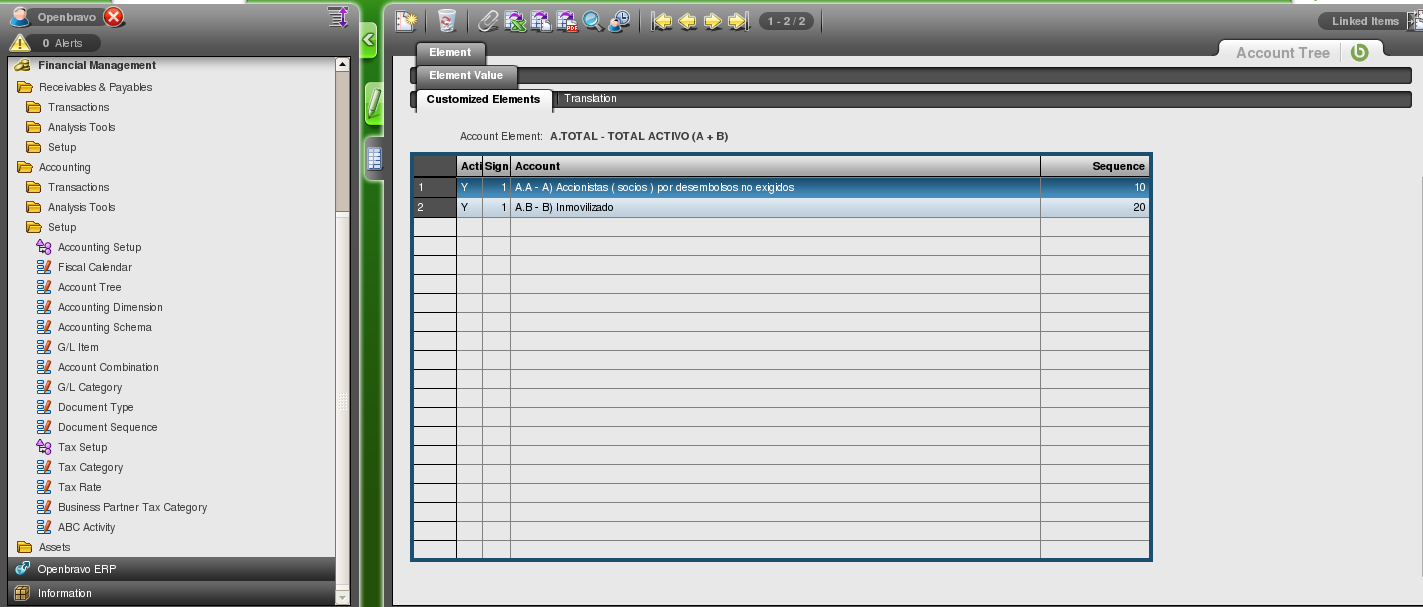 2. create a new account element, associate this new account element to the existent account tree, and import another account chart (i.e: AccountsESOpenbravo_PGCgral2007V7.csv) using the import account functionality.
