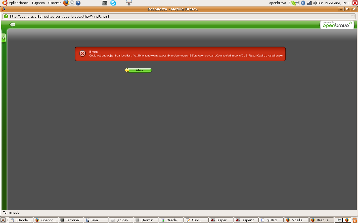 DescriptionWhen you execute a Jasper Report and does not appear the report, a pop-up appears. If you do not maximize it, it is not possible to see the error that application shows.