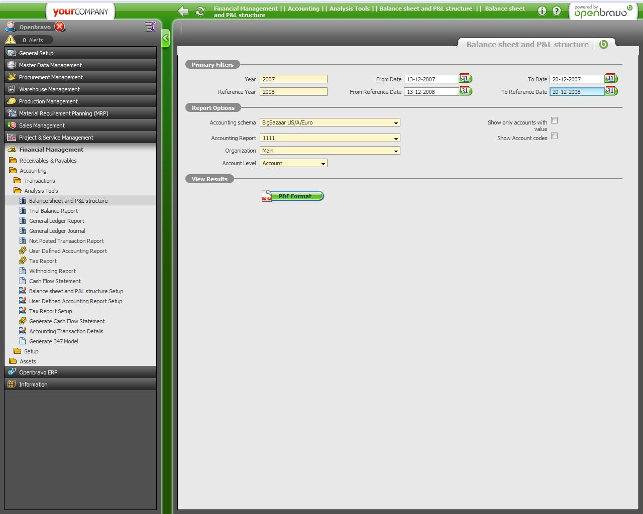 | Summary | 0007032: Runnig "Balance sheet and P&L structure " report gets error. | |||||||