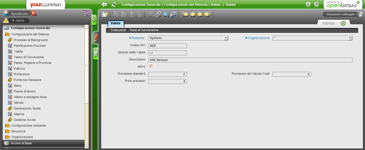 The problem shows itsself when we use "openbravo admin" role and italian language. In this case many windows under 'configurazione del sistema' (i.e. valuta) are in english and not in italian. the problem doesn't happen with "system administrator" role and italian language. |