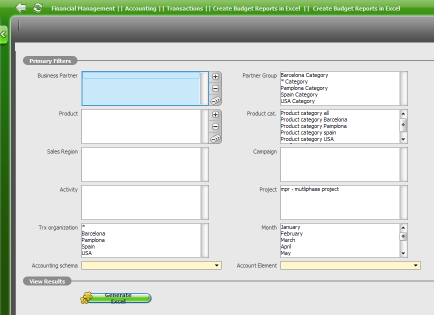 Steps To ReproduceOpen the window at Financial Management > Accounting > Transactions > Create Budget Reports in Excel