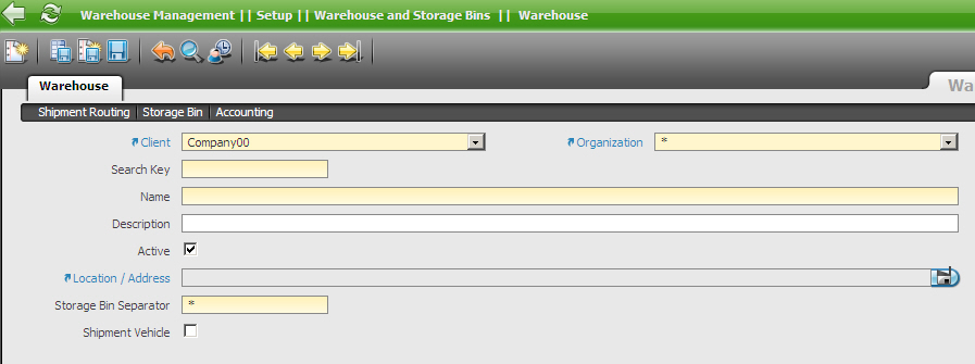 | Description | Warehouse Management || Setup || Warehouse and Storage Bins || Warehouse It's not very intuitive how to fill out the address field. When you go there with the cursor, the cursor can be placed in the field, yet nothing can be filled out. Either the cursor should not be able to go to the field (since you can't fill out anything anyway), but just on the selection icon or that if you click the field the selector pops up aswell. We just started with a new course for the BFT and one user got stuck on this field because he didn't know how to fill it out, so apparantly it's not very intuitive. | |||||||||||