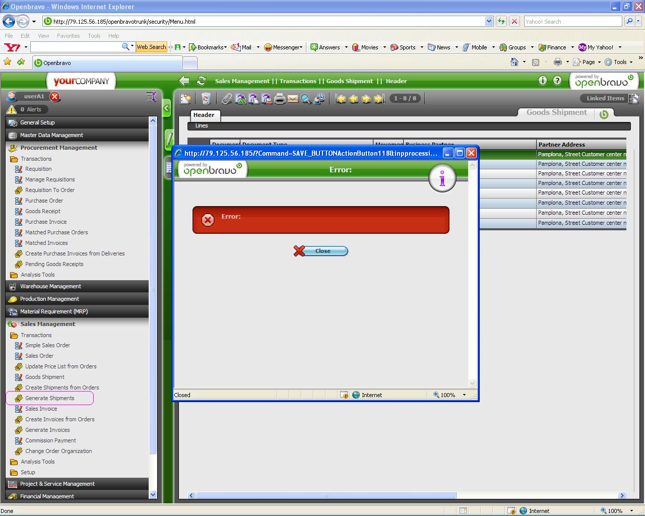 Hi Pablo, yes, With out creating a Sales order (or) If shipment document is created for all the sales order. in both the cases if we try to generate shipment documents using Generate shipment option i am getting the blank error message. |
