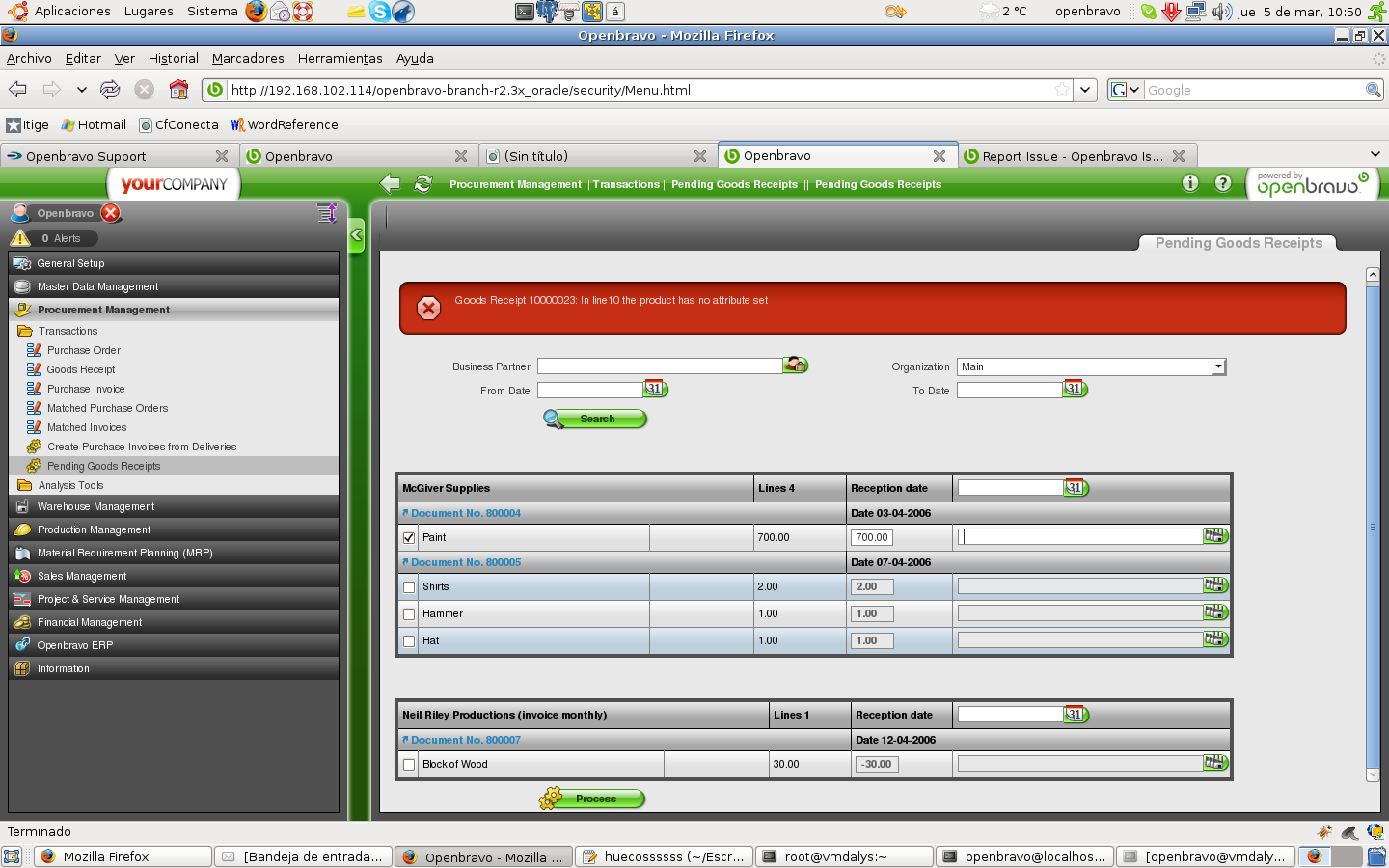 | defect | [Openbravo ERP] 03. Procurement management | major | always | 2009-03-05 10:54 | 2009-04-22 00:01 | |||