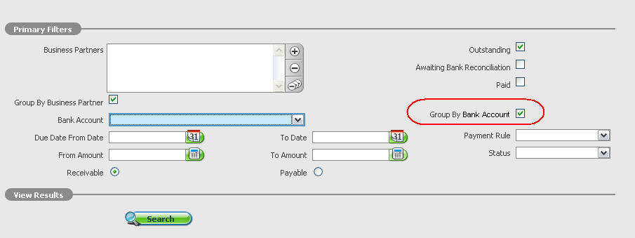 | Summary | 0008162: Payment report does not allow to filter or group by bank account. | |||||||