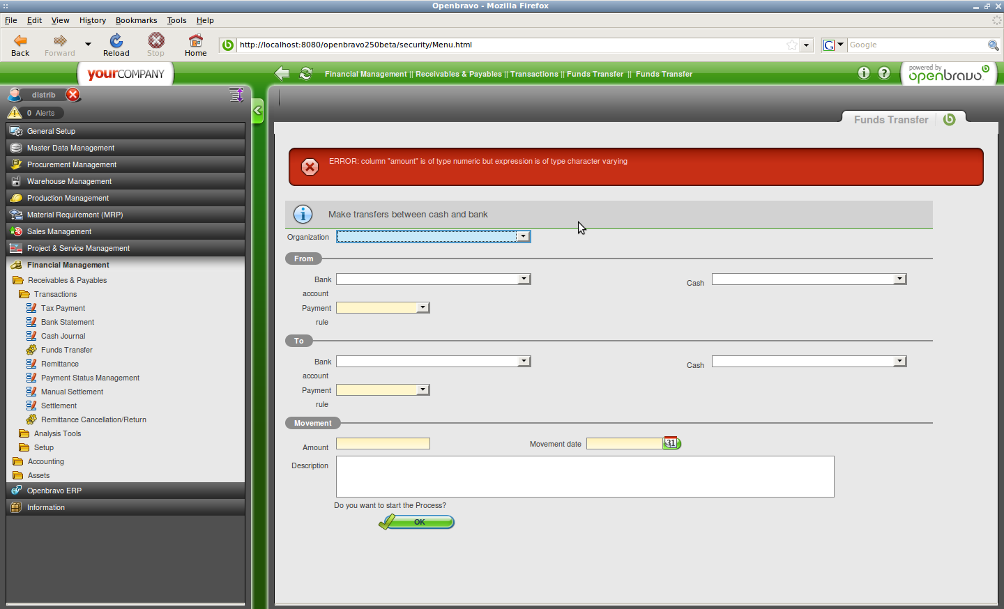 Steps To Reproducetry commit a bank2cash funds transfer here:
