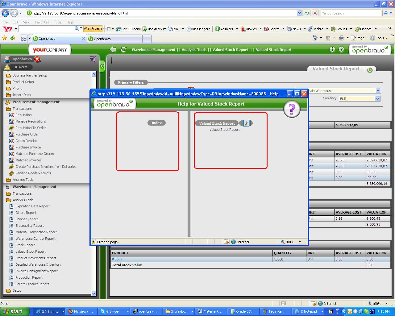 | Steps To Reproduce | Move to Warehouse Management || Analysis Tools || Valued Stock Report || Valued Stock Report and click ? help icon. The page displays without details | |||||||