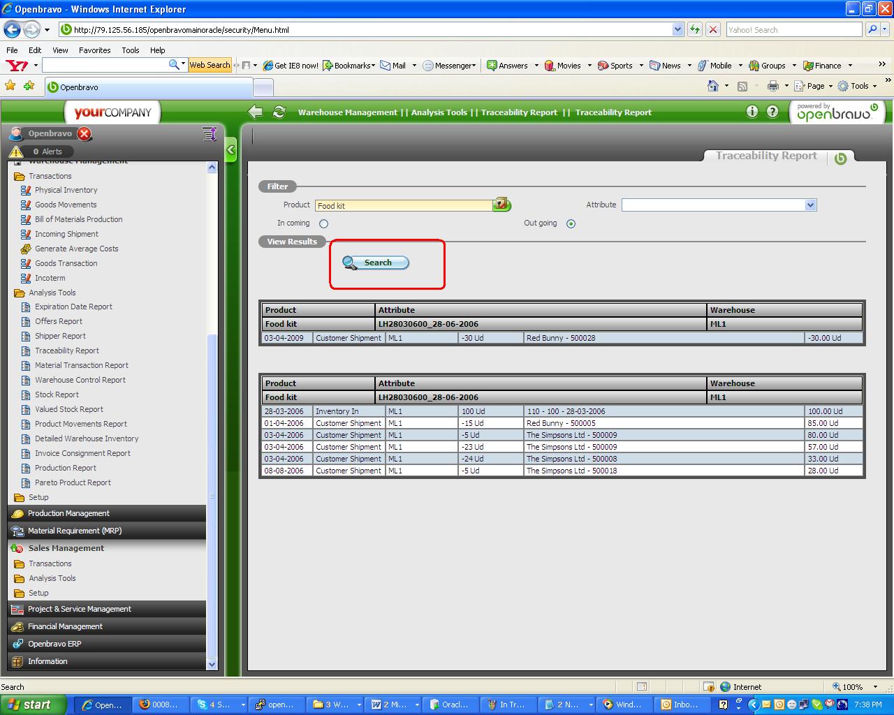 | Description | Button Label 'Search' is out of Context, since the page is a Report page change it to 'HTML Format' Warehouse Management || Analysis Tools || Traceability Report || Traceability Report Check the screen shot for details. | |||||||