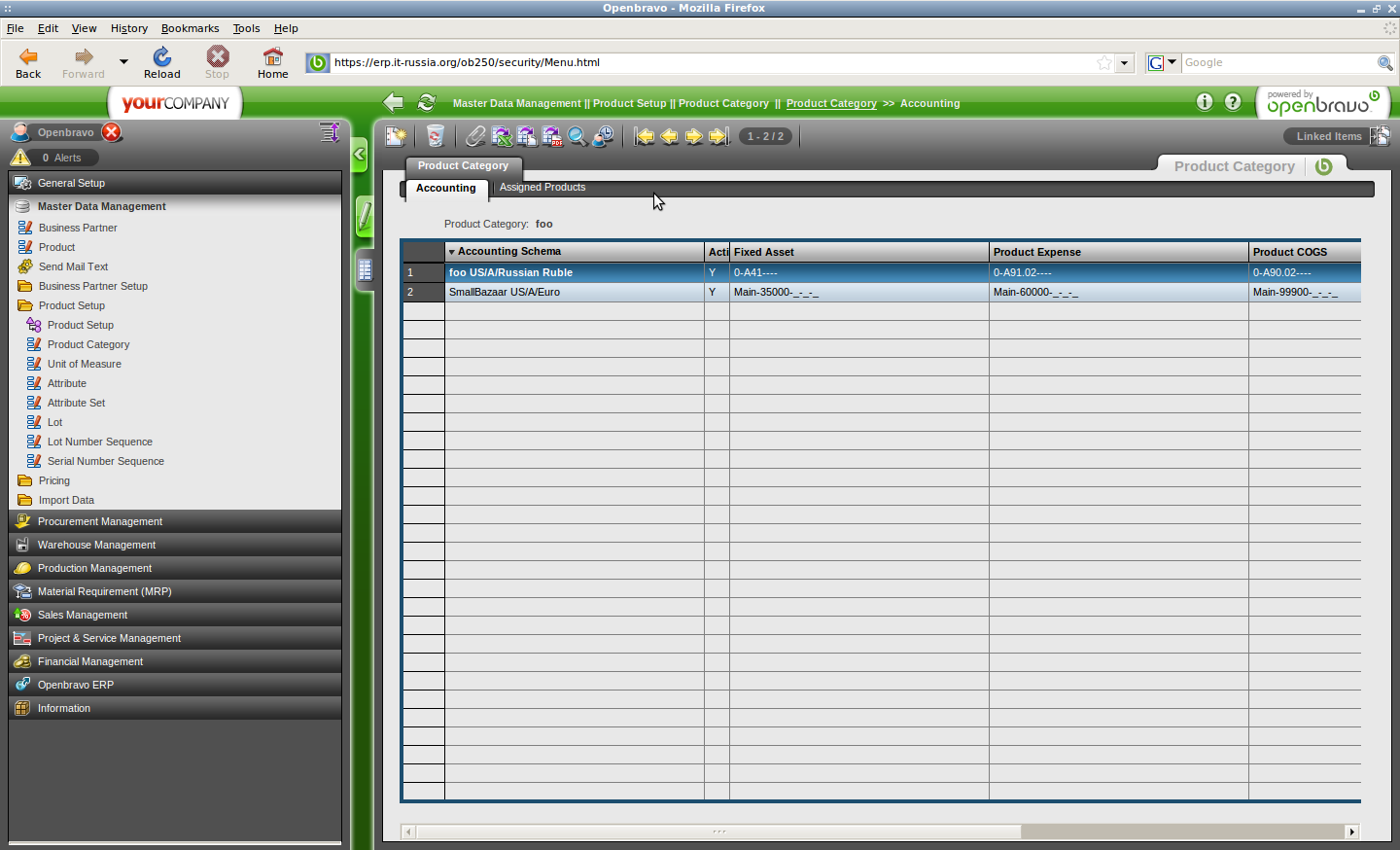 Descriptionsetting up new product category in existing client (say, SmallBazaar), accounting schema entry from recently added client (foo in my case) appears in Accounting tab for added product category...